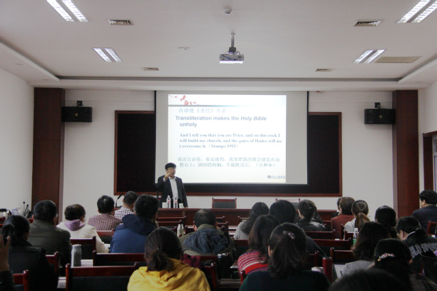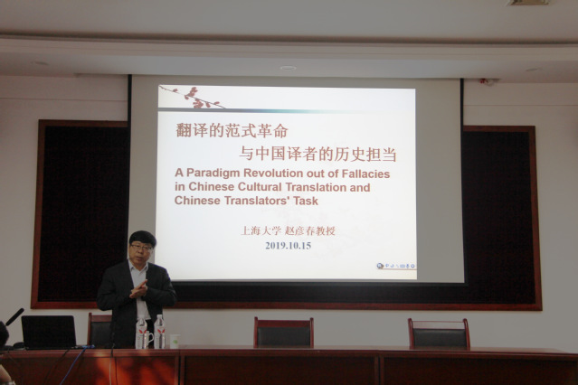 10月15日,上海大学赵彦春教授应外国语学院邀请,来校作题为“翻译学的范式革命与中国译者的历史担当”学术报告,学院全体教师和研究生参加报告会。