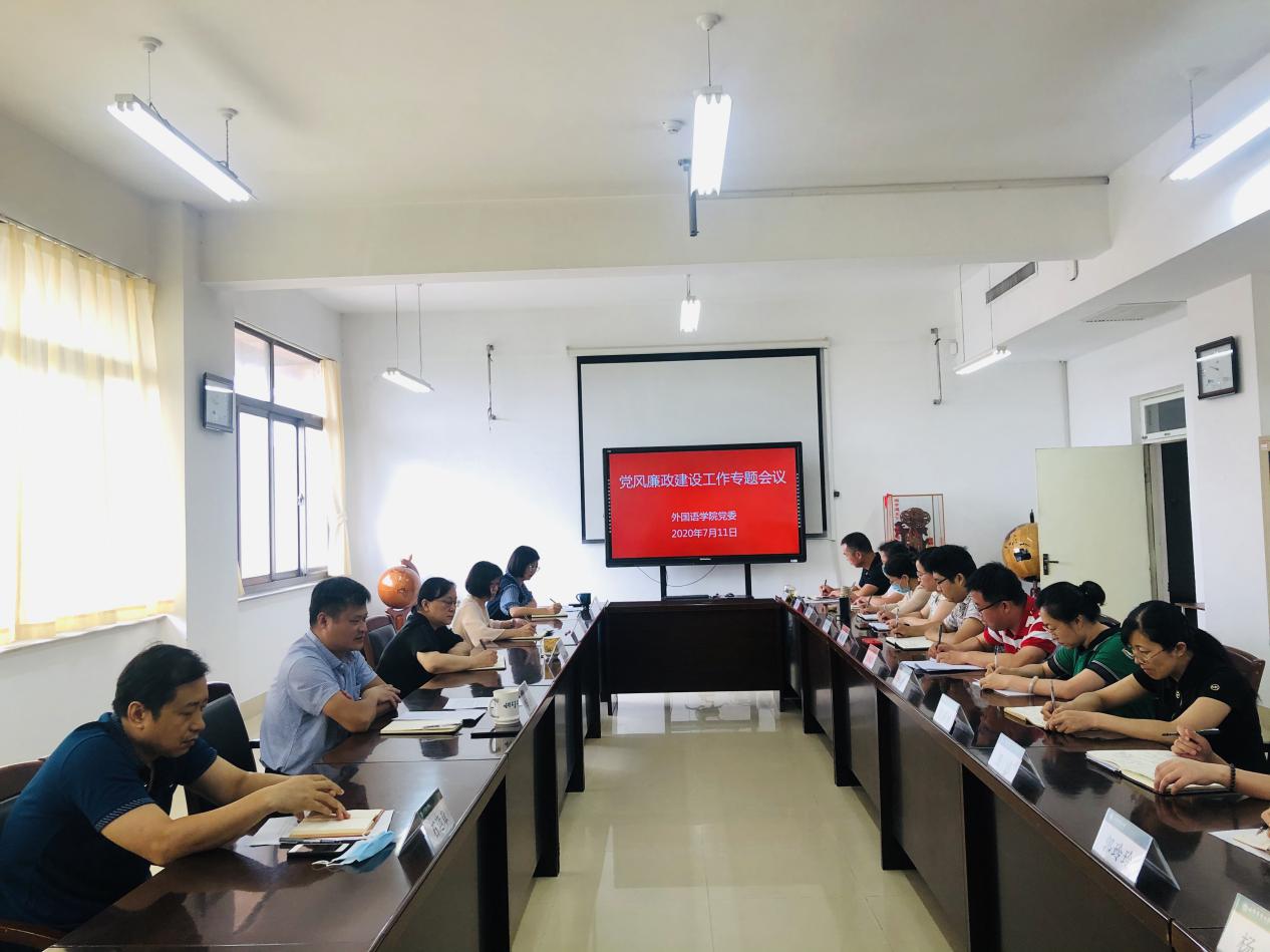 7月11日,外国语学院党委在文理大楼321会议室召开党风廉政建设工作专题会议,对党风廉政建设相关工作再部署,再落实。学院党委成员、各支部书记、各系室主任专业主任参加会议。