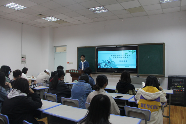 10月29日,外语学院于文理大楼201举办毕业生就业经验交流会。学院学生工作负责人、就业辅导员和学院2021届部分毕业生参加交流会。