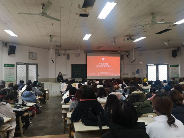12月11日,外语学院于5N401举办2022届毕业生考研指导会。学院行政负责人,辅导员,各专业主任及2018级全体学生参加此次报告会。