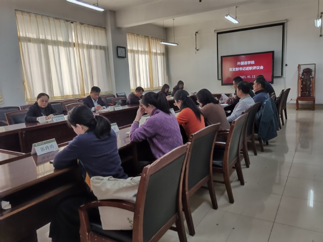 1月12日,外语学院党委在文理大楼321召开2020年度党支部书记述职评议会。学校督导员人事处副处长杨超,学院党委委员,各党支部书记和各系室主任参加会议。