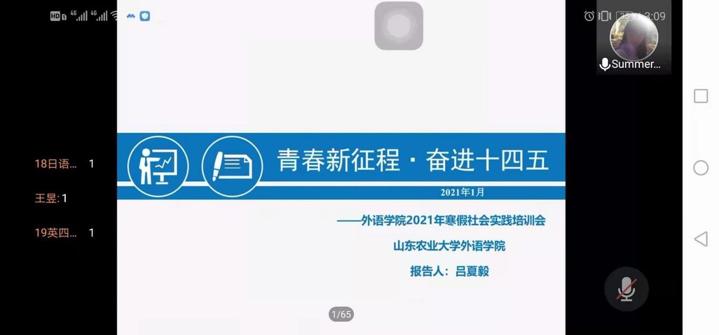 1月17日,外语学院举办2021年寒假社会实践线上启动仪式,学院全体辅导员和学生参加会议。