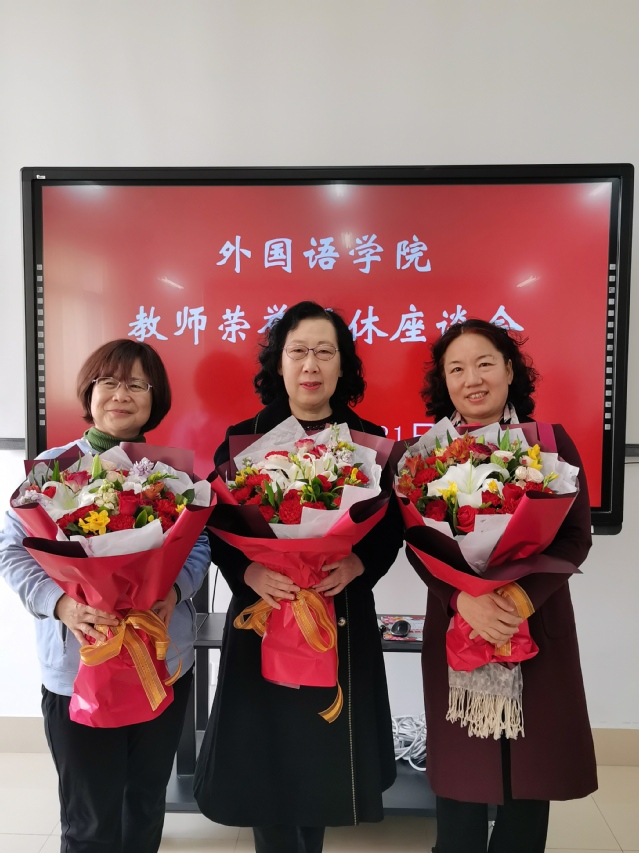 3月31日,外语学院在文理大楼321为曲小梅、庄淑霞、李方敏举办荣誉退休座谈会,学院班子成员,相关系室主任和专业主任参加会议。