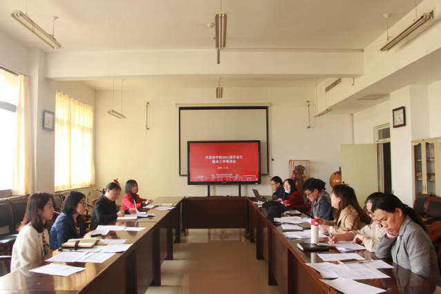 4月13日,外语学院在文理大楼321召开2021届毕业生第三次就业工作推进会。学院班子成员,各系室、专业主任,毕业生班级导师及辅导员参加会议。