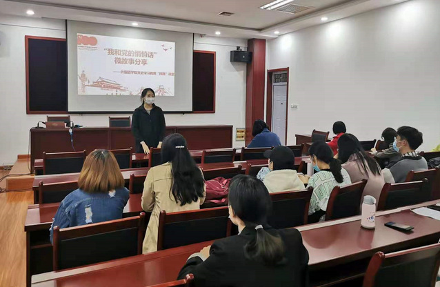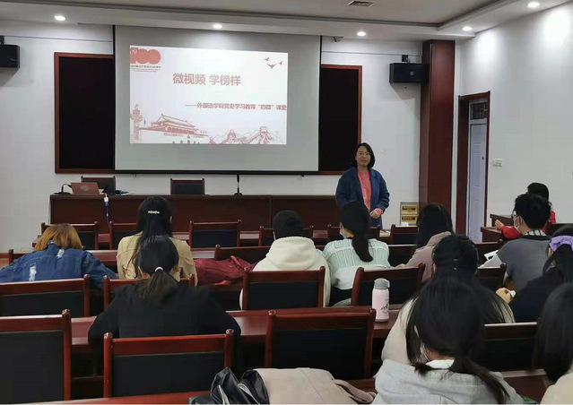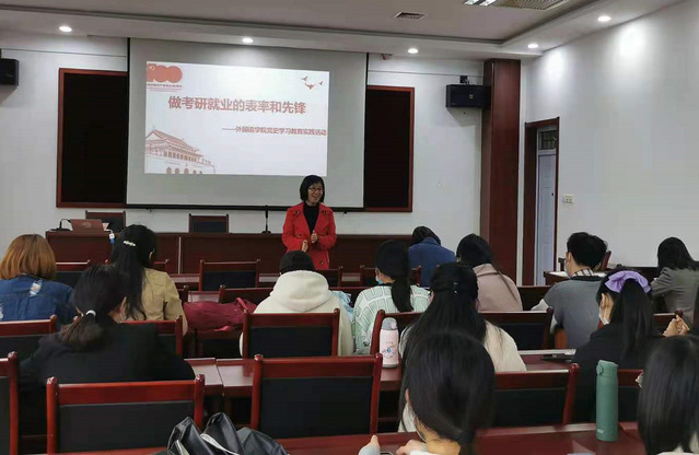 4月26日,外语学院学生党支部在文理大楼211对毕业生党员“做考研就业的表率和先锋”党史学习教育再推进,学生党支部教师和毕业生党员参加活动。