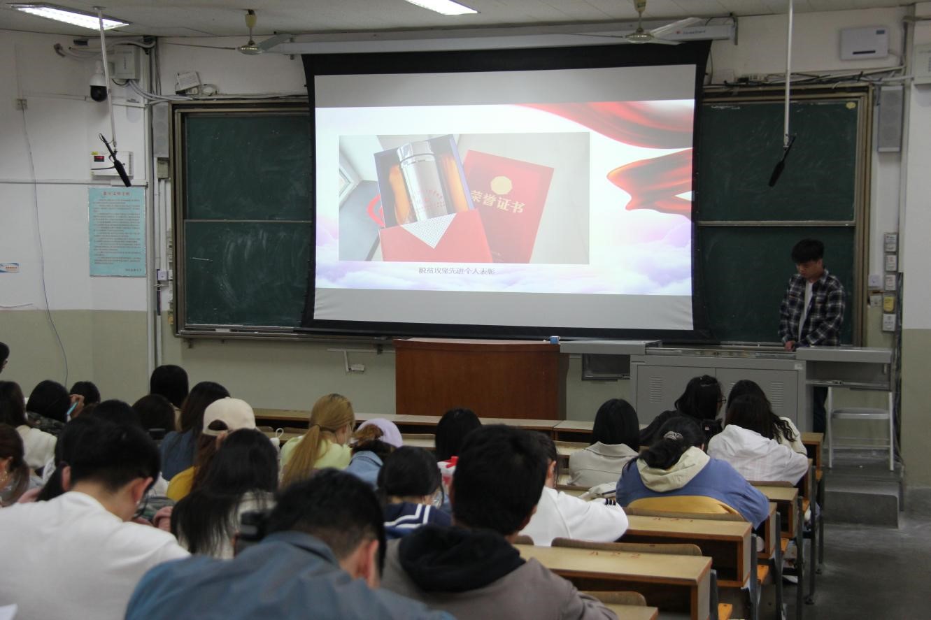 由于工作原因,侯永强未能来到现场,本次宣传会通过播放他的录音和PPT展示,让学生了解到在新疆工作的基本情况及祖国大西北的发展潜力。作为一名学生党员和主要学生干部,在大学时期,侯永强便具有强烈的责任心和服务意识,对待工作,他认真负责、一丝不苟,生活中,他诚恳待人,热心帮助同学。大学毕业后,当听说有去新疆工作的机会时,他毅然决然放弃已有的国企工作机会,千方百计说服仅有他这一个孩子的父母,选择到新疆喀什工作。他从进疆 人生的抉择、喀什 真实的模样和广阔天地 大有可为三方面讲述了他赴疆工作的故事。他说,近两年的基层工作,磨练了意志,收获了成长,与新疆这片热土结下了深厚的情缘。新一轮的西部大开发正如火如荼,西部发展已经站在新的历史起点上,这片土地蕴含着无限的潜力和惊人的活力,他号召广大外院学子,到西部去,到基层去,到祖国最需要的地方去!