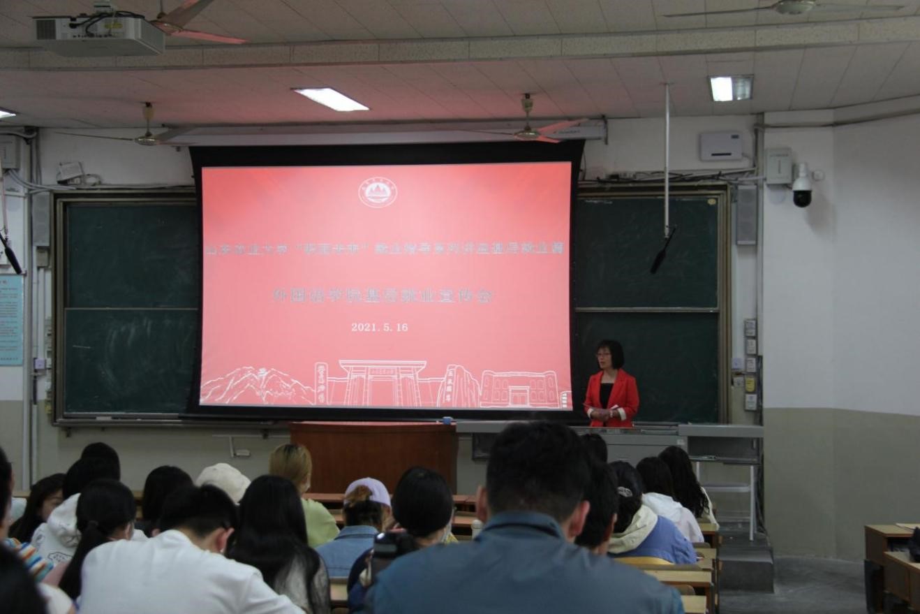 5月16日,外语学院在5N202、5N302开展“职面未来”基层就业宣传会,2015级赴新疆喀什工作的优秀毕业生党员侯永强远程分享就业工作经验,学院学生工作负责人、就业辅导员及2018级全体学生参加活动。