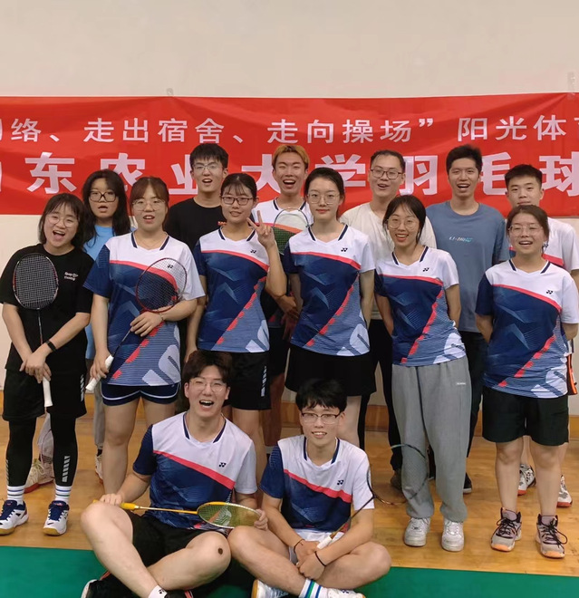 6月5日,在山东农业大学羽毛球超级联赛中,外语学院羽毛球代表队获乙组第一名优异成绩。