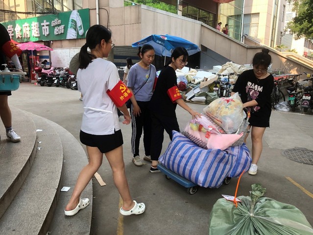 6月22日,外语学院学生党支部组织党员及入党积极分子在毕业生宿舍楼前以志愿服务的方式帮助毕业生搬运行李离校。部分学生党员和2020级入党积极分子参加本次活动。