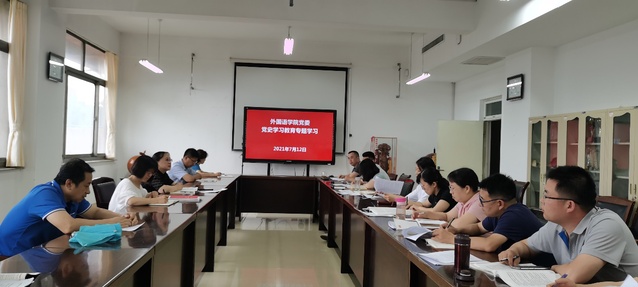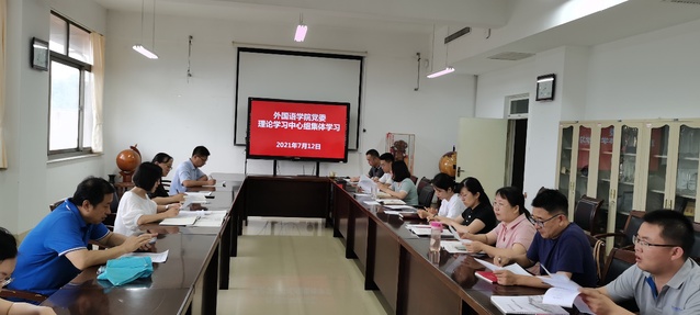 7月12日,外语学院在文理大楼321组织党委理论学习中心组开展集体学习,学院班子成员、党委委员、各支部书记、全体辅导员和各系室主任参加学习。