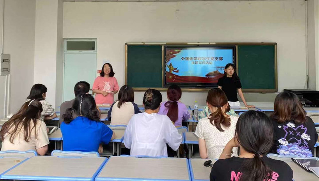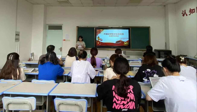 7月13日,外语学院在文理大楼201开展主题党日活动,专题学习习近平总书记“七一”重要讲话精神。学院全体辅导员、预备党员参加活动.