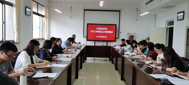 8月31日,外语学院在文理大楼321召开2021年新生工作部署会,学院班子成员、系主任专业主任、新生班主任、辅导员参加会议。