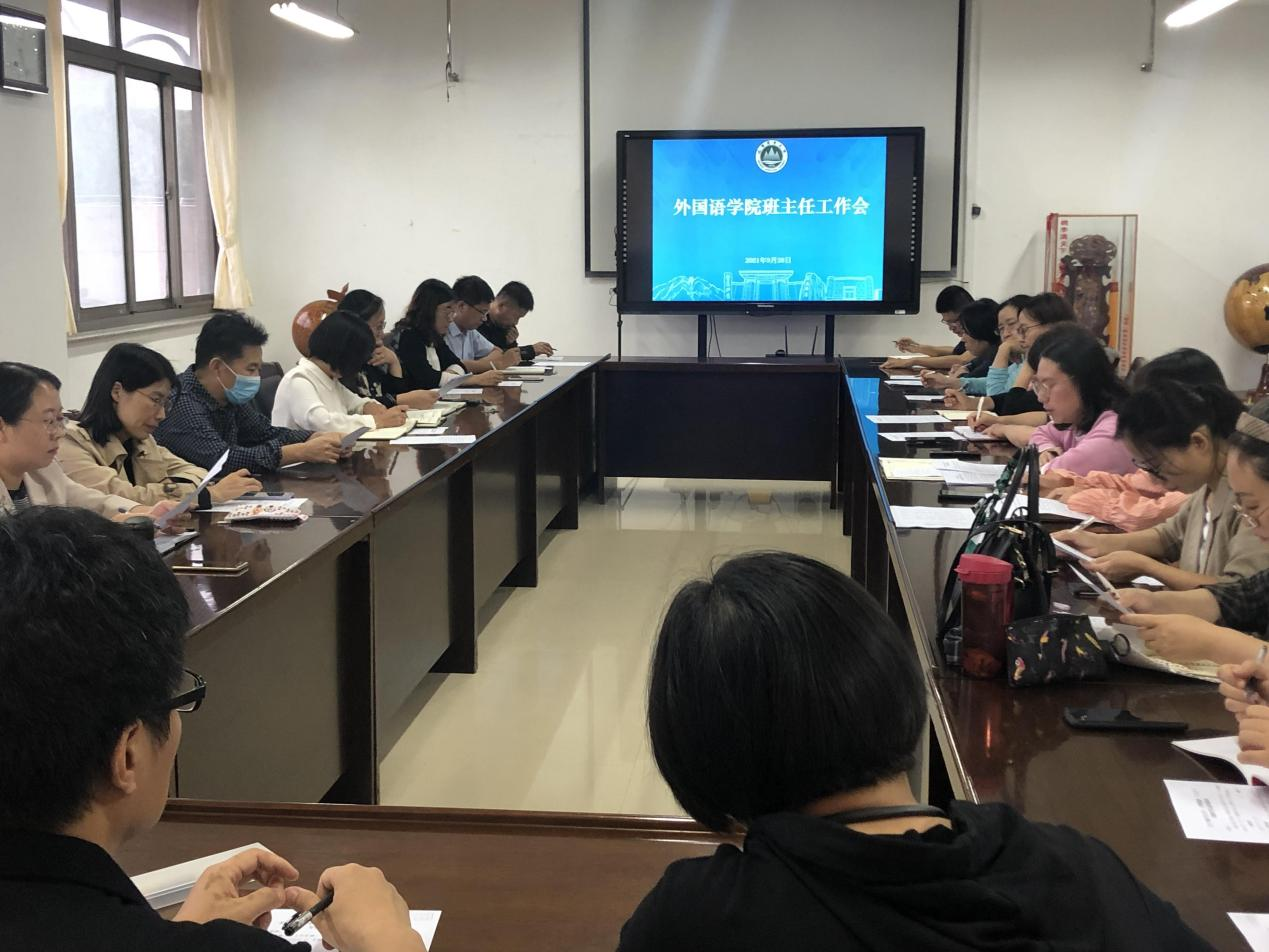 9月28日,外语学院在文理大楼321召开班主任工作会,学院班子成员、全体班主任及辅导员参加会议。