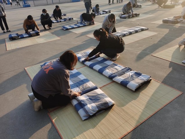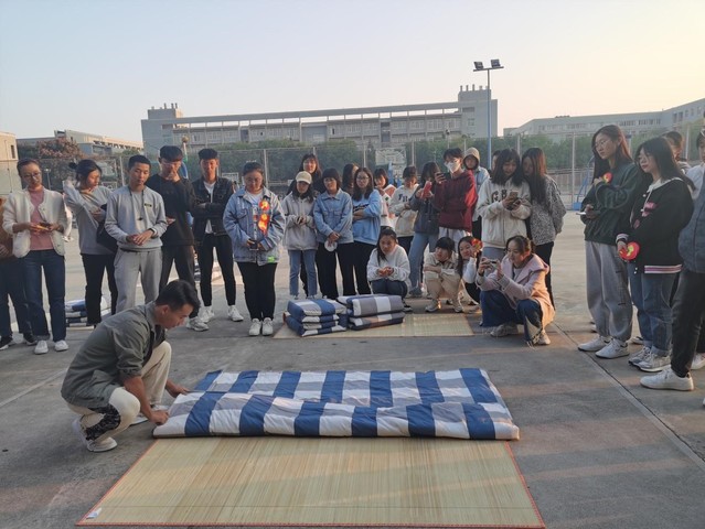 10月12日,为巩固新生军训成果,加强宿舍文明建设,外语学院在泮河校区排球场举办2021级新生叠被大赛,辅导员、部分高年级学生会成员和全体新生参加活动。