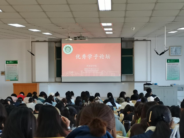 10月17日,外语学院在泮河校区N401举办优秀学子论坛,辅导员、4名优秀学子出席论坛,2021级全体新生参加本次论坛。