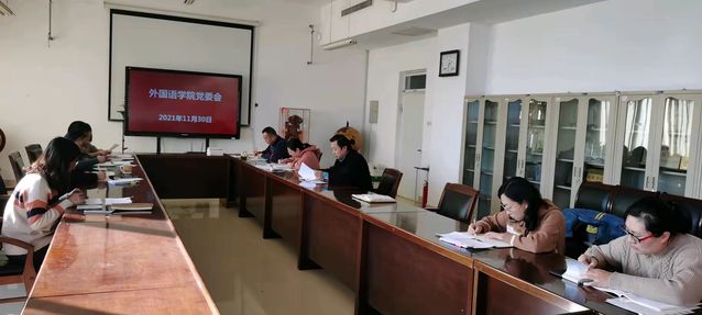 11月30日,外语学院在文理大楼321组织党委理论学习中心组开展集体学习,学院全体党委委员和支部书记参加会议。