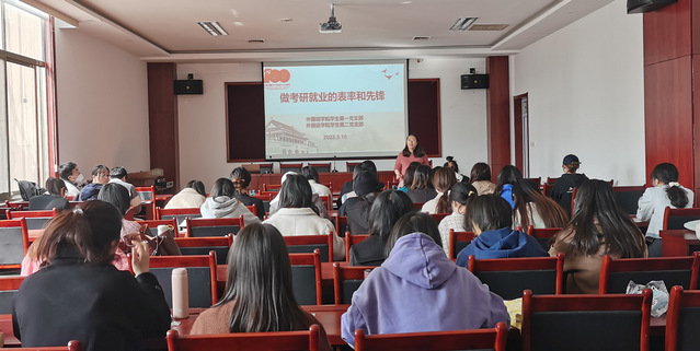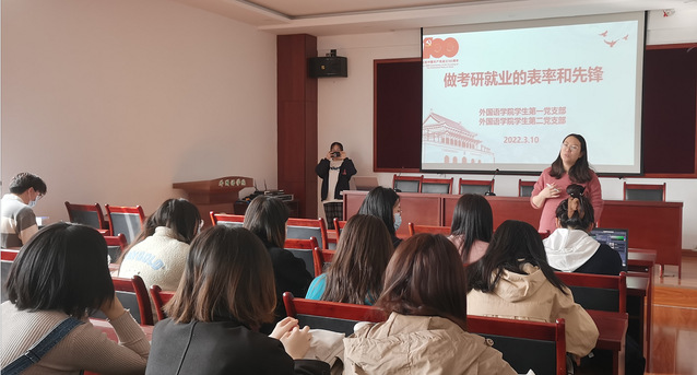3月10日,外语学院学生第一、第二党支部在文理大楼211,组织毕业生党员开展“做考研就业的表率和先锋”活动,支部书记和毕业生党员参加活动。