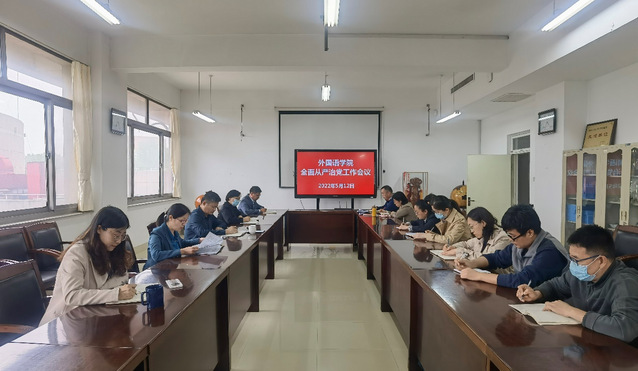 5月12日,外语学院在文理大楼321召开全面从严治党工作专题会议,深入学习贯彻习近平总书记在十九届中央纪委六次全会上的重要讲话精神,总结2021年全面从严治党工作,部署2022年工作任务。学院全体党委委员、系室主任、党支部书记参加会议。