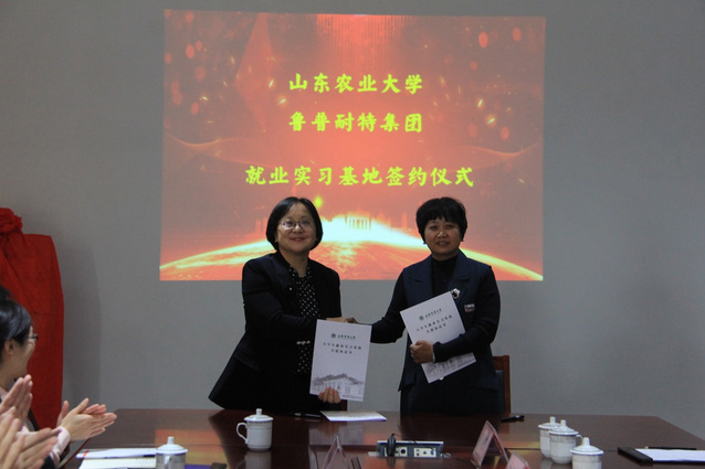 在就业实习基地签约仪式上,岳远彬与鲁普耐特集团董事长沈明共同为农大就业实习基地揭牌,学工处副处长姜芳介绍学校情况并推介优秀毕业生,为学生争取就业资源和求职机会。外语学院院长翟红华与鲁普耐特集团总裁邱延平签订就业实习基地协议。