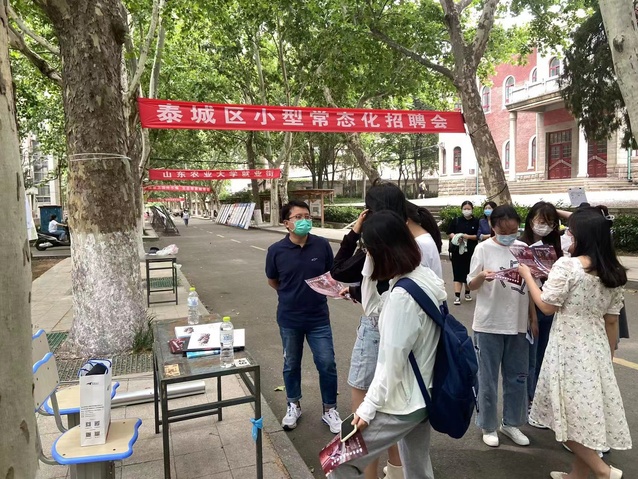 5月25日,外语学院在岱宗校区学林路举办泰城区小型常态化招聘会,外语学院负责人、全体辅导员、2022届毕业生及部分非毕业生参加招聘会。