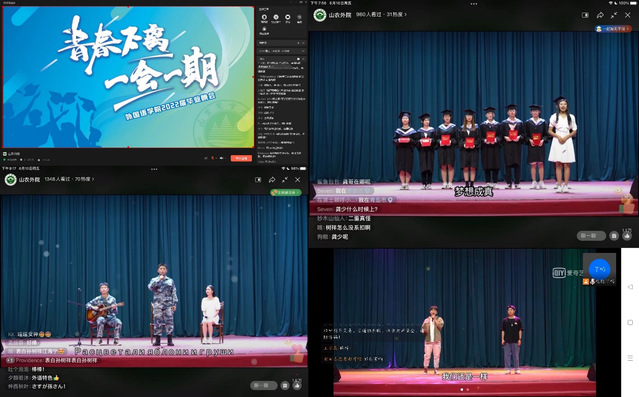 6月10日,外国语学院在线上举办“青春不离,一会一期”主题毕业晚会,欢送2022届毕业生。学院领导老师、全体毕业生和低年级学生在线观看晚会。
