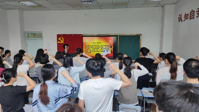 在2022届毕业生党员最后一次活动中,党支部组织全体毕业生党员观看《伟大的奋斗 从一大到二十大》之《形成伟大建党精神》和《党的历史上第一部正式党章诞生》视频,集体学习党章和伟大建党精神,重温入党誓词。学院党委副书记孙慧敏给毕业生党员上党课,围绕“学党章强党性·勇担当争先锋”主题,联系毕业生考研就业当先锋实际,引导毕业生党员进一步坚定听党话、跟党走的理想信念,牢记党员身份,树立党员形象,加强学习,脚踏实地,在步入社会后的学习工作、就业创业等方面充分发挥先锋模范作用,时时处处事事勇担当、争先锋、走在前,以身体力行的实际行动迎接党的二十大胜利召开。
