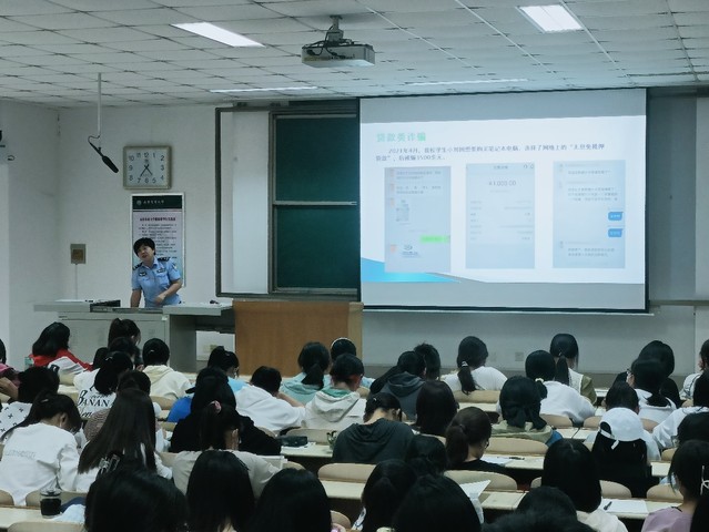 本次安全教育讲座围绕防盗、防火和防诈骗开展。首先,王秀讲解如何在宿舍和公共场所防盗窃并为同学们普及防火知识,告诫同学们遇到火灾时要保持镇静,及时拨打报警电话做好自救;随后,以身边真实案例为同学们讲解刷单诈骗、网购诈骗、网络赌博、裸聊敲诈等案件内容,提醒学生增强安全意识,掌握安全技能,防范电信诈骗,做好自我保护,切实保障自身安全。