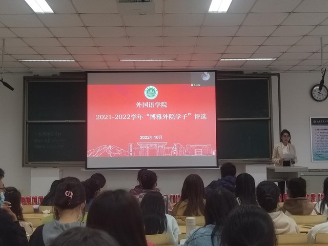 10月4日,外语学院在泮河校区综合楼N201、N202举办第二届“博雅外院学子”评选大会。学院学生工作负责人、全体辅导员,2019、2020、2021级部分学生代表、2022级全体学生参加活动。