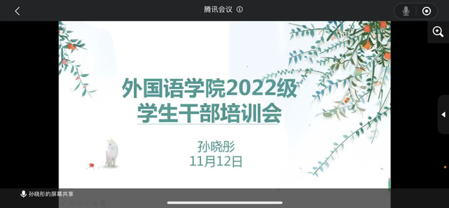 11月12日,外语学院通过腾讯会议召开2022级学生干部培训会。学院学生工作负责人、全体辅导员及2022级全体学生干部参加培训会。