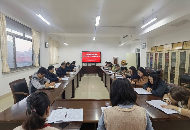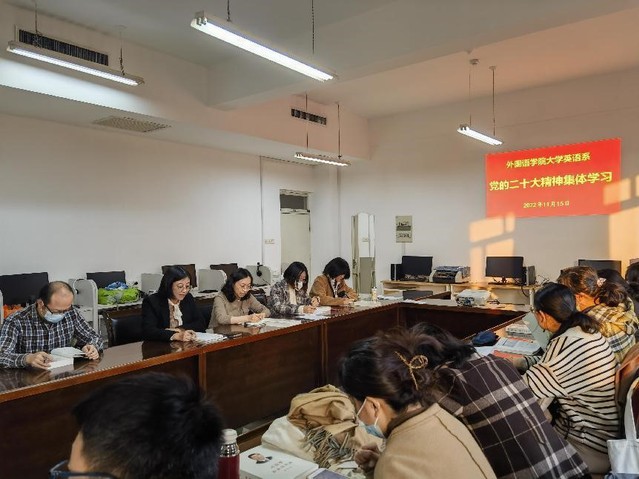 11月15日,外语学院组织班子成员深入各系室、全体教职员工以系室为单位,认真学习贯彻党的二十大精神。