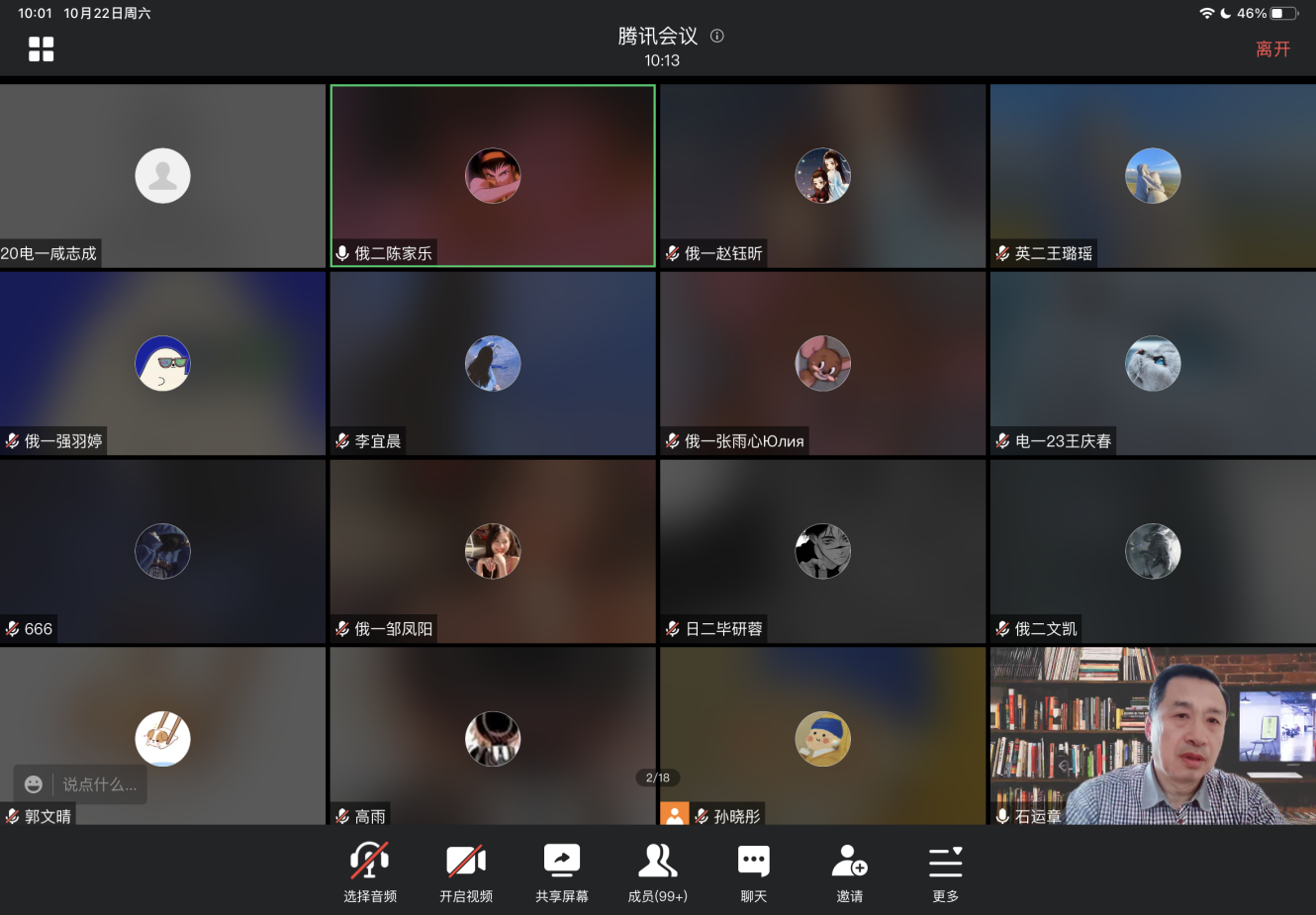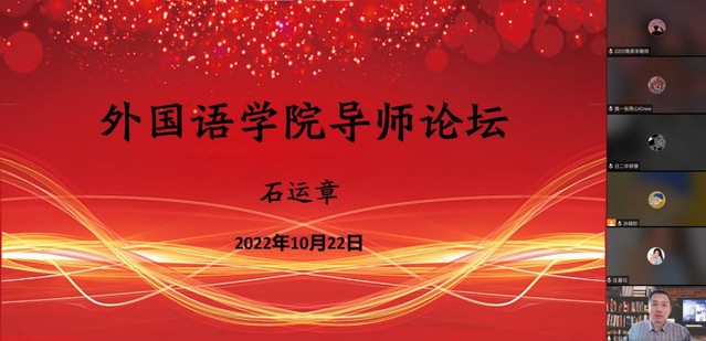 10月22日,外语学院通过腾讯会议举办导师论坛,学院教授委员会主任石运章教授作报告,辅导员及2022级全体新生参加论坛。