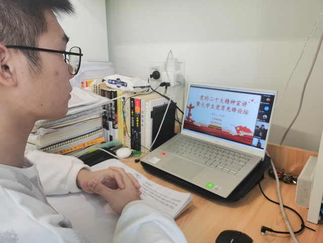 2020级商务英语专业预备党员曲晗宇说:“听完报告,我倍受鼓舞。青年强,则国家强,我们生逢其时,施展才干的舞台无比广阔,实现梦想的前景无比光明,我将自觉用党的二十大精神统一思想和行动,坚定不移听党话、跟党走,努力学习,增长才干,以更加昂扬奋发的姿态应对困难挑战,为全面建设社会主义现代化国家、全面推进中华民族伟大复兴贡献自己的力量!”