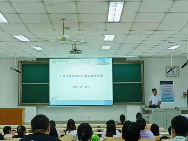 会上,徐启豪副院长首先为毕业生讲解考研具体要求,引导毕业生规范报考。他将学术学位与专业学位展开对比,进行多角度分析,为毕业生厘清报考思路。同时,向毕业生介绍我院学位点、翻译专业硕士点的设立情况,为毕业生讲解MTI授权点,推荐翻译参考书目,帮助毕业生充分了解考研情况,减少备考道路上的障碍因素。鼓励学生积极报考本校研究生,结合个人实际,理性确定报考学校,引导毕业生坚定信念、坚持不懈,一步一个脚印扎实备研,就一定能够实现考研梦想。
