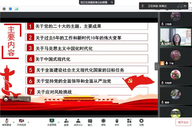 院领导为小语种系教师讲授党课,宣讲党的二十大精神