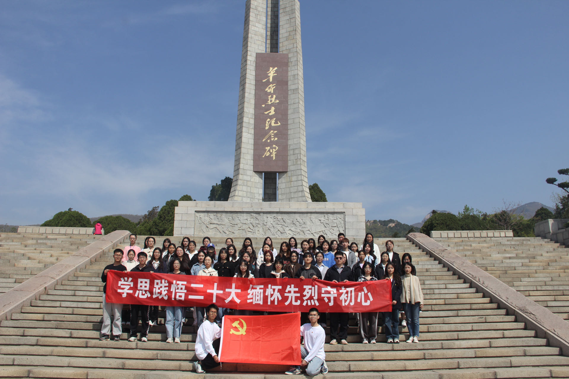 活动中,全体党员重温入党誓词,瞻仰泰安革命烈士陵园,缅怀革命先烈,学习革命先烈的英雄事迹,追寻泰安革命历程的红色印记。期间,学院学生第二党支部书记孙晓彤以抗美援朝战争为题,为大家上“清廉党课”。她说,天下艰难际,时势造英雄。回首抗美援朝战争,无数志愿军将士勇往直前、浴血奋战,从激战松骨峰、鏖战长津湖到血战上甘岭,涌现出杨根思、黄继光、邱少云等众多战斗英雄,他们用生命和胆气与敌人的钢铁抗衡,打出了国威军威,打出了中国人的骨气、底气和志气。英雄们以伟大的斗争壮举推动共和国前进的历史车轮,更以其为国为民的坚定信仰、舍生忘死的精神品格,照亮中华民族的精神殿堂,转化成激励我们前行的强大力量。青年强,则国家强。当代青年生逢其时,施展才干的舞台无比广阔,实现梦想的前景无比光明。一定要珍惜革命先烈用鲜血和生命换来的幸福生活,牢记“为中国人民谋幸福、为中华民族谋复兴”初心使命,坚定不移听党话、跟党走,怀抱梦想又脚踏实地,见贤思齐、崇尚英雄、争做先锋,把自身发展融入到国家的前途命运中去,奉献社会,添砖加瓦,敢想敢为又善作善成,做有理想、敢担当、能吃苦、肯奋斗的新时代好青年,让青春在全面建设社会主义现代化国家的火热实践中绽放绚丽之花。