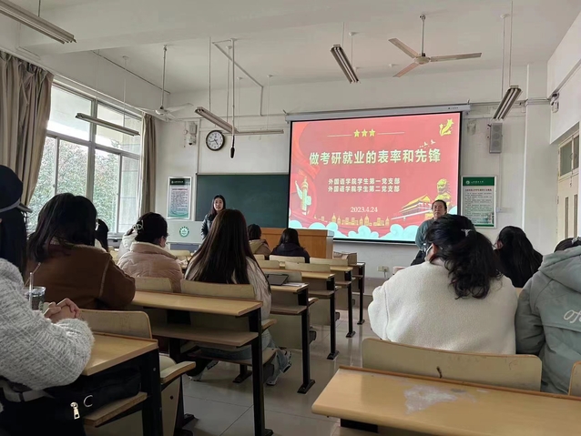 外语学院紧紧围绕学习贯彻习近平新时代中国特色社会主义思想主题教育“学思想、强党性、重实践、建新功”总要求,把就业和学风建设作为加强改进学生党建的载体,用党建为就业和学风建设营造政治氛围,抓党建促就业、促学风,推动党建和就业、学风建设深度融合、互促共进。