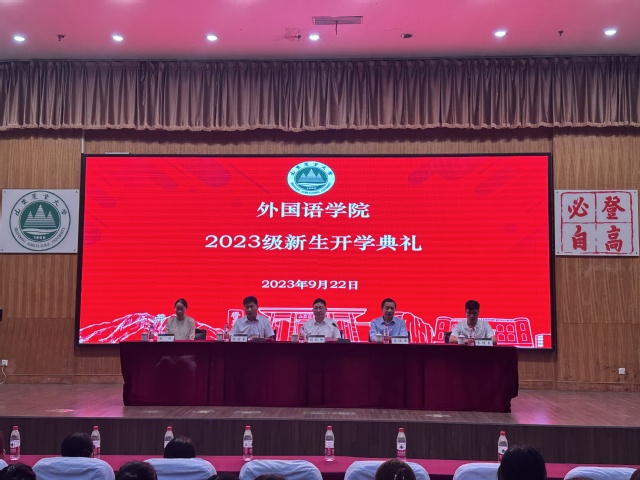 9月22日,外语学院在泮河校区第一学术报告厅举行2023级新生开学典礼。学院班子成员、教授委员会主任,系主任、专业主任,辅导员和全体2023级新生参加典礼。