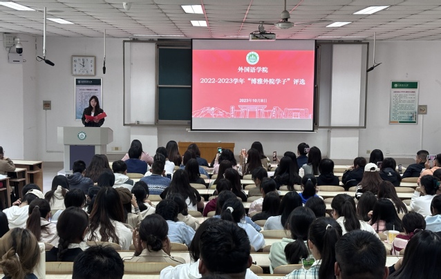 10月8日,外语学院在泮河校区综合楼N104举办第三届“博雅外院学子”评选大会。学院党委副书记费美娟、全体辅导员、部分学生代表参加活动。