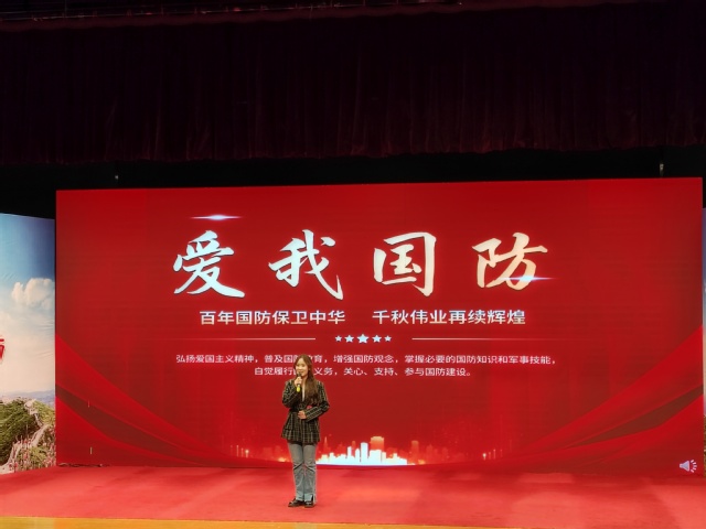 本次大赛旨在激发大学生崇军尚武、参军报国热情,在全社会营造“爱我国防、强我国防”的浓厚氛围。庄嘉仪以“百年国防保卫中华,千秋伟业再续辉煌”为主题,以龙廷革命史纪念馆为切入点,讲述革命先辈们情系国防、献身国防的巾帼英雄故事。随后她以新中国成立以来取得的一系列伟大成就为例,展示新时代国防人才的顽强精神和坚定信念,并指出青年一代应响应时代使命,积极挺膺担当。