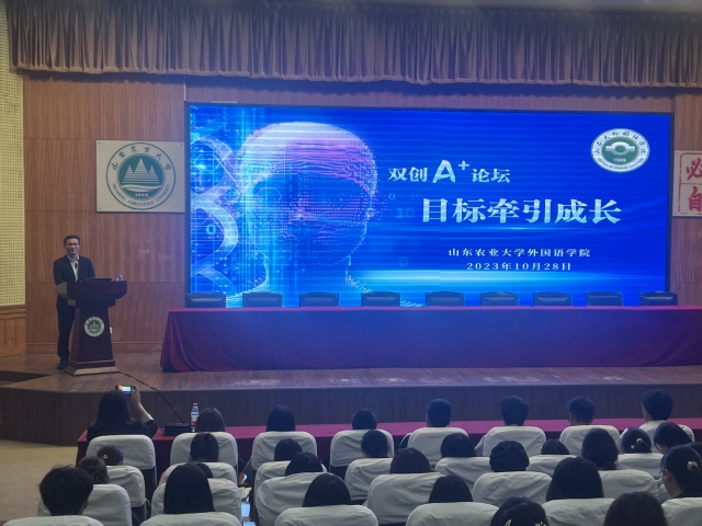 10月28日,外语学院在泮河校区第一学术报告厅举办双创A+论坛,浙江东鸿电子股份有限公司总经理周建川担任主讲人,2023级全体新生参加论坛。