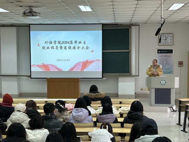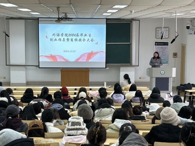 12月27日,外语学院在泮河校区综合楼N101举办2024届毕业生就业指导暨离校安全大会,学院党委副书记费美娟、全体辅导员和2024届全体毕业生参加会议。