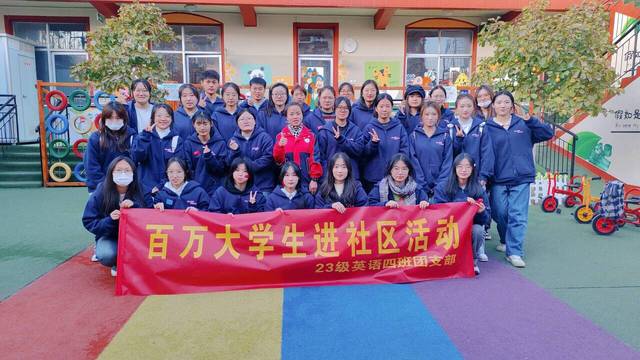 2023年11月,外语学院深入贯彻落实学校“百万大学生进社区”社会实践活动,积极响应,统筹规划,应用外语专业优势,建立完善结对机制,同社区双向赋能,先后共有13个班级团支部在指导教师的带领下,分别前往泰安市岱岳区以及泰山区部分社区驻地开展“百万大学生进社区”社会实践系列活动。