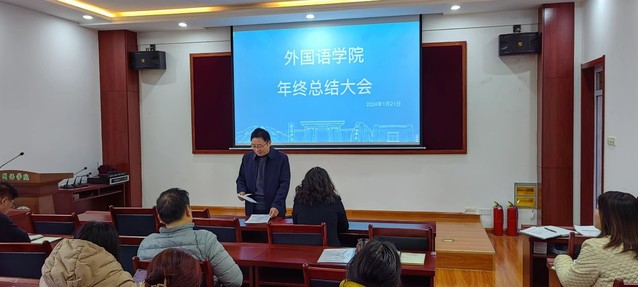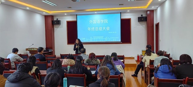 1月21日,外国语学院在文理大楼211召开年终总结大会暨迎接本科教育教学审核评估动员会。学院班子成员及全体教职工参加了此次会议。