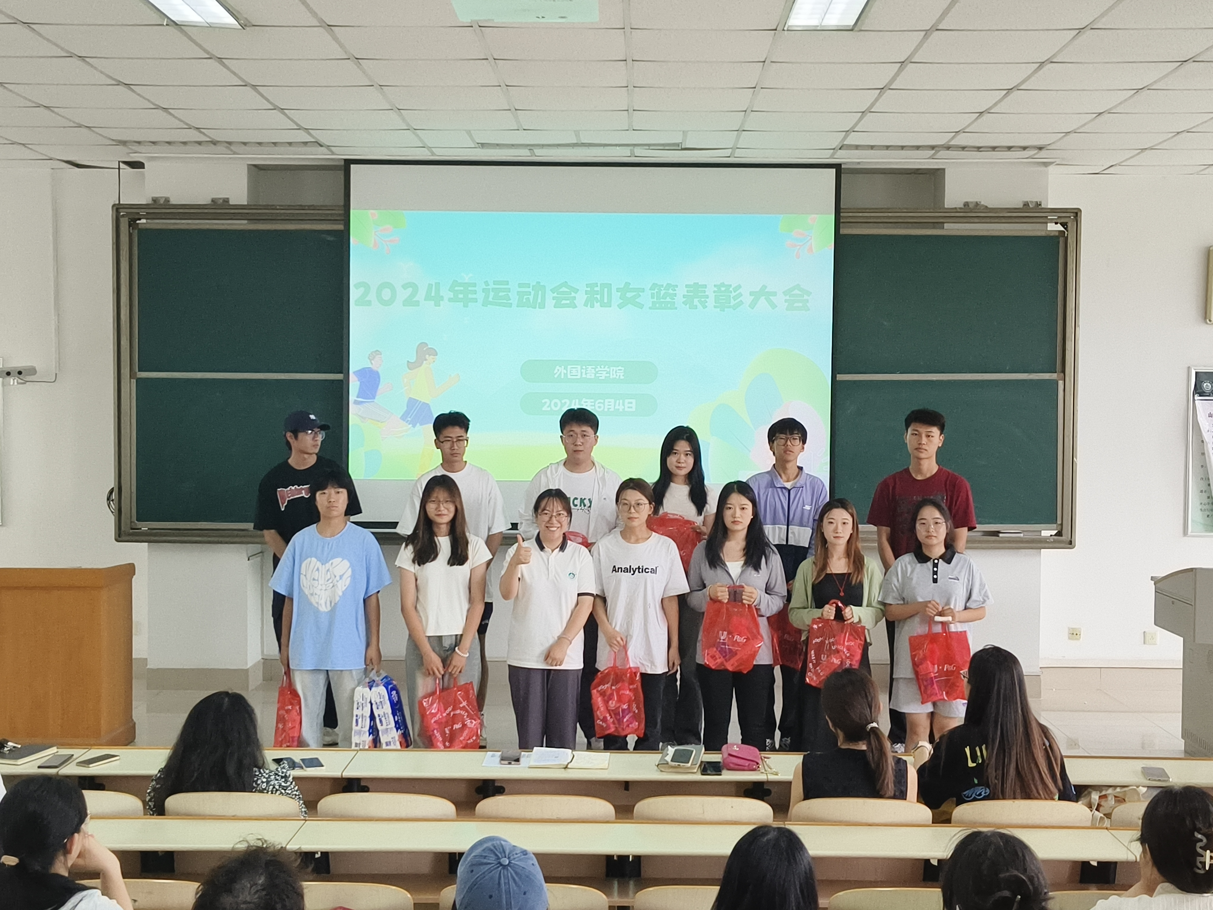 6月4日,外语学院在泮河校区综合楼N203举办2024年校春季田径运动会及校园女子篮球赛表彰大会,学院全体辅导员、运动员和女篮队员参加会议。