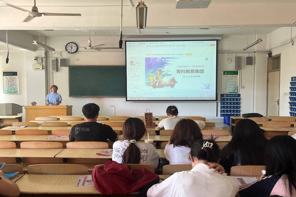9月20日,山东青科教育科技集团在泮河校区综合楼S219举办企业专场宣讲会,外语学院2021、2022级部分学生参加招聘活动。