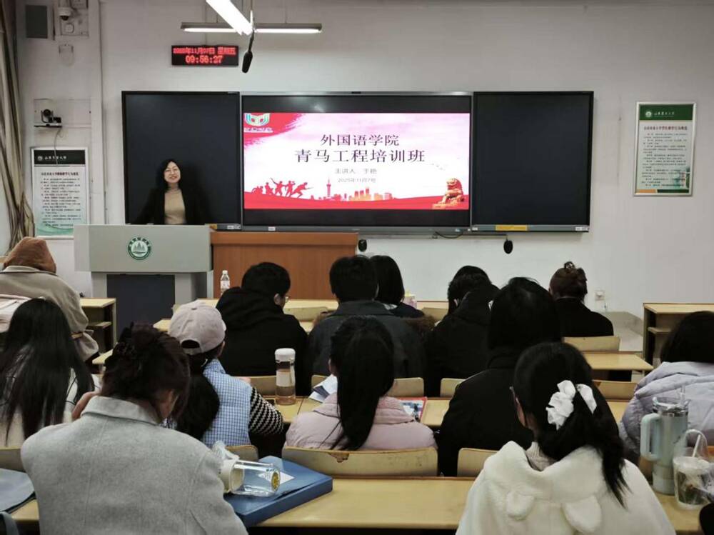 11月7日,外国语学院在泮河校区综合楼S110举办青年讲师团宣讲暨青马工程学生干部培训会,本次活动特邀山东农业大学外国语学院副教授于艳主讲,学院团委书记李娜及全体学生干部参加此次活动。