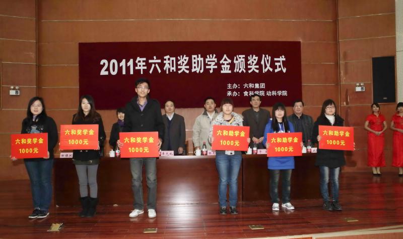 山东六和集团有限公司在食科学院、动科学院设立的奖学金和助学金,每年评选一次,每次奖励和资助48名品学兼优的研究生、本科生,每生获1000元奖励或者资助。