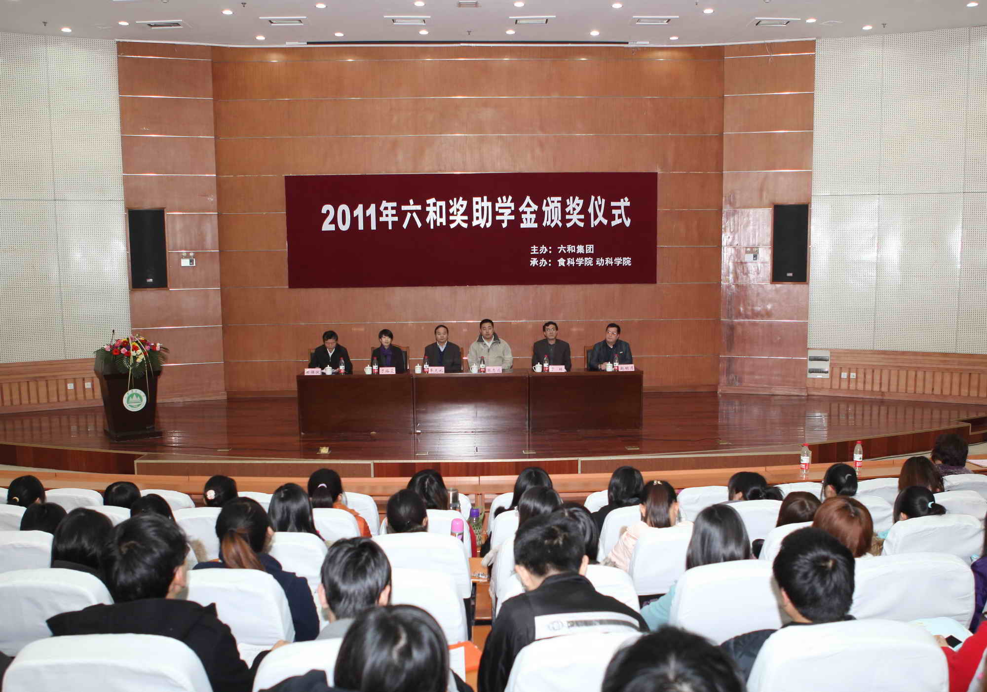 12月5日下午,2011年六和奖学金、助学金颁奖仪式在北校区文理大楼学术报告厅隆重举行。副校长车先礼,山东六和集团有限公司人力资源部副总经理张志远先生,六和集团肉食事业部人力资源总监于露霞女士出席。六和集团有关管理人员、工程技术人员,食科学院、动科学院四百余名师生代表参加颁奖仪式。
