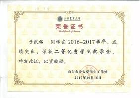 历年学业成绩专业前10%,综合素质测评保持班级第一,荣获国家奖学金、二等优秀学生奖学金、安谱检测企业奖学金,荣获优秀学生干部、优秀学生团干部、优秀学生会干部、社会工作单项奖等荣誉。