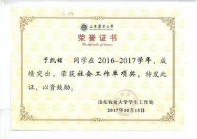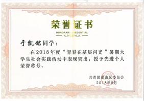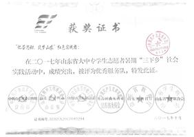 荣获大学生暑期三下乡社会实践活动省级优秀团队、泰山区先进个人、优秀社会实践报告等荣誉。